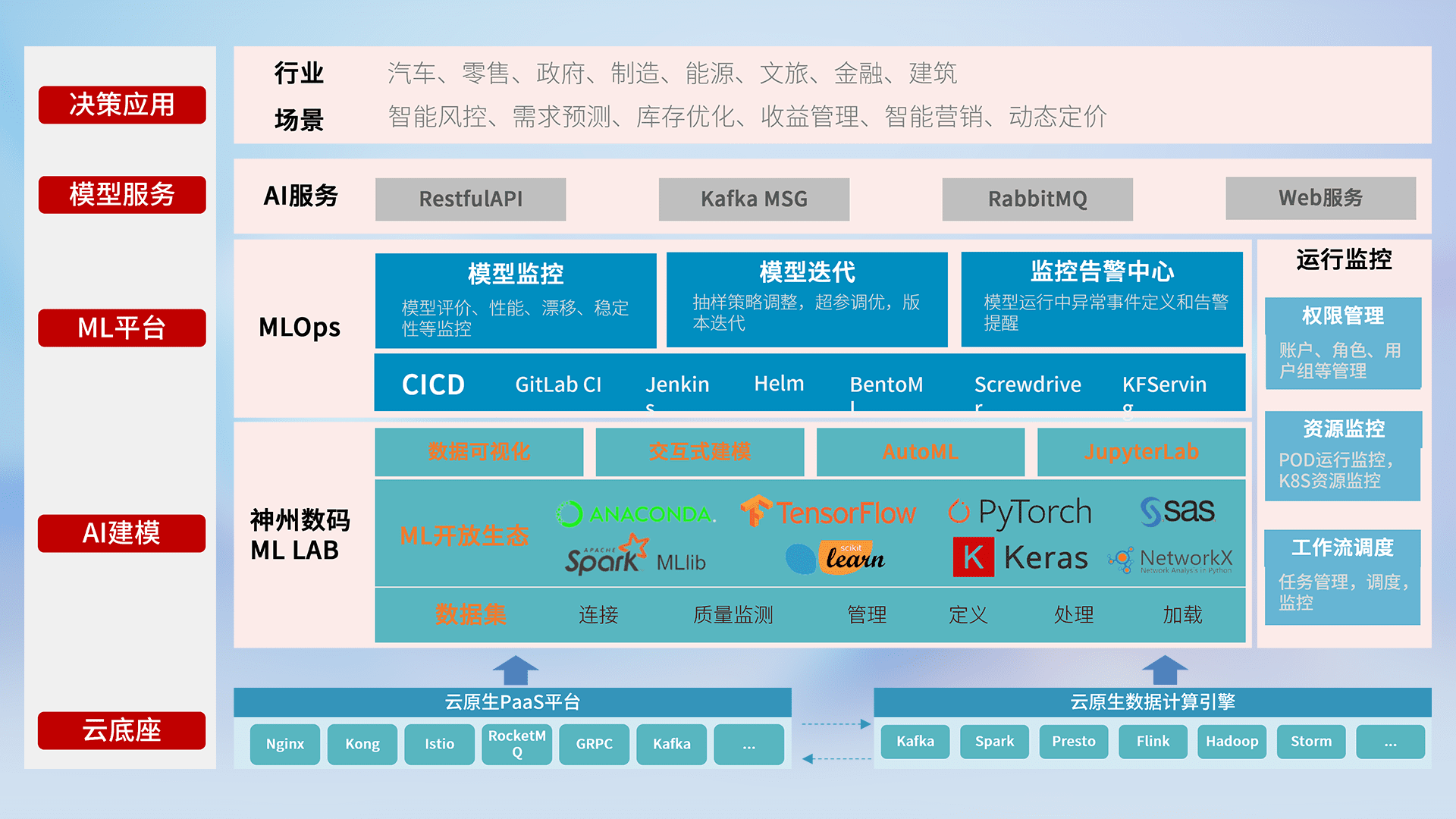 数据+模型双引擎驱动,,面向智能服务场景,,,快速灵活利用AI技术,,支持业务决策,,,助力企业智能化转型破局。。。